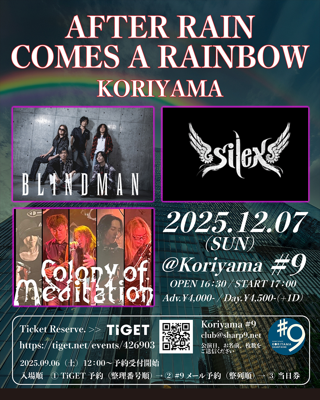 チケット取扱: TiGET (https://tiget.net/events/426903) 郡山シャープナイン店頭(Tel:024-973-5242 / mail:club@sharp9.net)