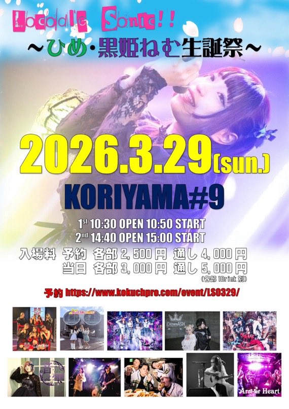 予約 各部¥2,500- / 通し¥4,000- 当日 各部¥3,000- / 通し¥5,000- (各部1DRINK別)